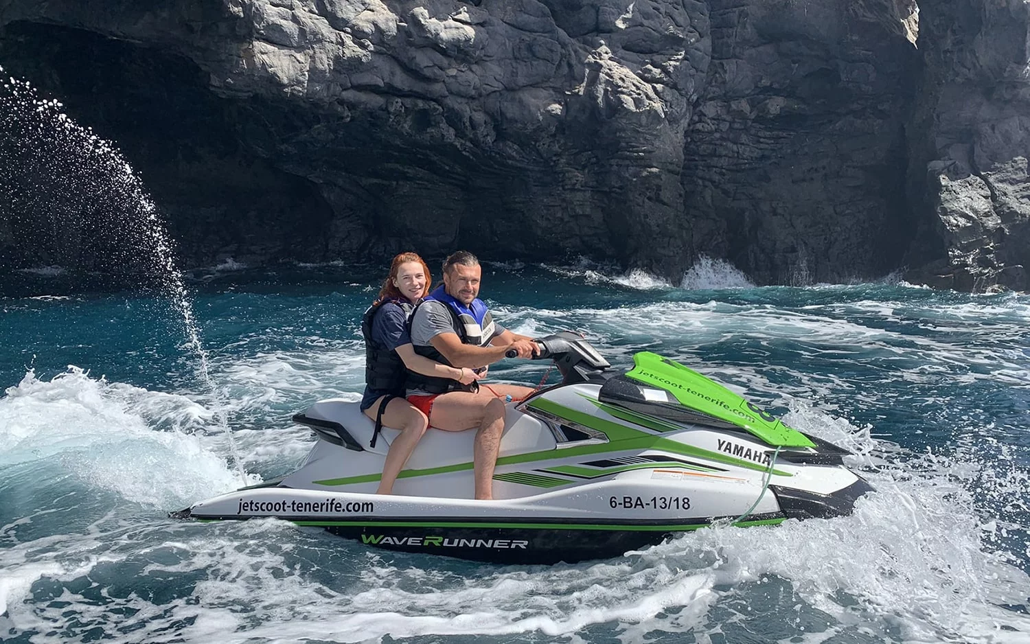 ¡Atrévete con este tour en moto de agua a Palm Mar cuya ruta te permitirá disfrutar de vistas espectaculares! Conduciremos las motos de agua recorriendo todo el sur-este de Tenerife costeando por la gran playa de las Américas a toda velocidad y máxima adrenalina. Llegaremos a la hermosa playa del Camisón de arena blanca donde hay una piscifactoría que atrae a los animales marinos. Por esta razón, durante este tramo en algunas ocasiones se puede dar la posibilidad de visualizar alguno mientras avanzamos hasta la punta del Palm Mar.